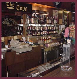 Happy hour is Monday through Friday, 4:00-7:00 p.m. Sandwiches, burgers, and other snacks are always available. Stop by The Cove, and relax while listening to your favorite songs from the juke box. |